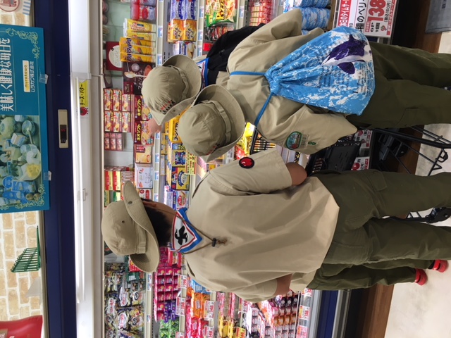 下山後、班ハイクでふれあいの森キャンプ場に移動しました。班ハイクは、事前に初級スカウトが中心になって計画しました。途中でキャンプの食材の買い出しも自分たちで行いました。