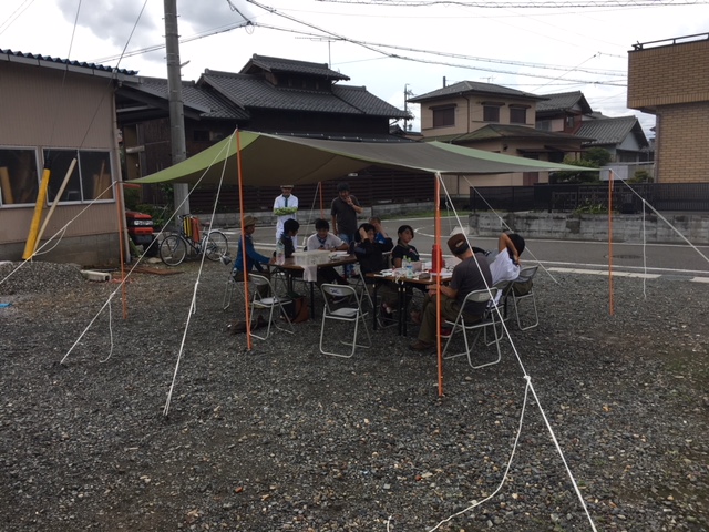 今回は新たな仲間となった岐阜12団の団倉庫前のスペースを使用しました。初めての場所に、長良から地図だけを頼りにして自転車で移動しましたが、グリンバーなら楽勝でしたね。