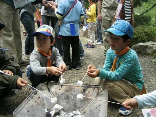2015年5月24日 / 最終更新日時 : 2015年5月26日 鈴木 BVS隊長 ビーバー隊(年長~小学校2年生) ご褒美にスモア 呪文を集めてとなえると魔法使いはいなくなりました。ビーバー王国から魔法使 いを追い払ったご褒美にビーバー王国からスモアのご褒美をもらいまし た。 とってもおいしかったです♪ “ご褒美にスモア” に対して1件のコメントがあります。 松岡 より: 2015年5月29日 9:18 PM みんなで元気に呪文を唱えてゴール。スモアは甘くて熱くてアメリカの味がしましたね。また、みんなで楽しもう。やっぱりビーバーは楽しいね。 返信 コメントを残す コメントをキャンセルメールアドレスが公開されることはありません。 ※ が付いている欄は必須項目ですコメント ※ 名前 ※ メール ※ サイト Δ このサイトはスパムを低減するために Akismet を使っています。コメントデータの処理方法の詳細はこちらをご覧ください。