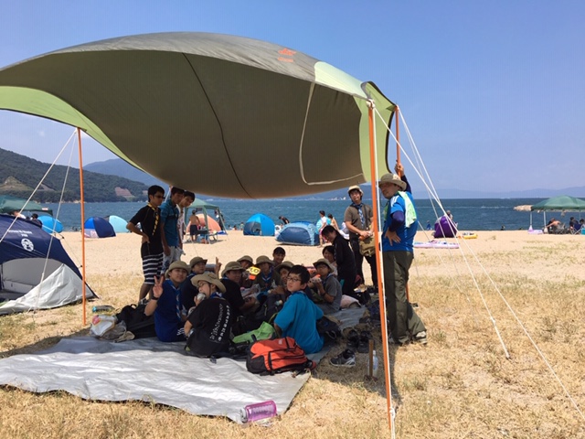ベンチャー・ローバースカウトが立てたタープにも注目です。素晴らしい強度で、強風にびくともせずスカウトたちの日除けになってくれました。