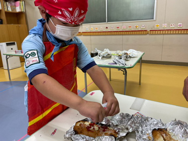 6月になりました。いよいよサマーキャンプが近づいてきました!キャンプの準備第1弾として野外料理の練習をしました。メニューはじゃがバターとカートンドッグです。残念ながらじゃがいもの収穫はもう少し先になるとのことで自分たちで掘り上げた新じゃがではなかったですが、それでもおいしいじゃがバターが出来上がりました!食後のデザートは焼きマシュマロ♪サマーキャンプが待ち遠しいです!