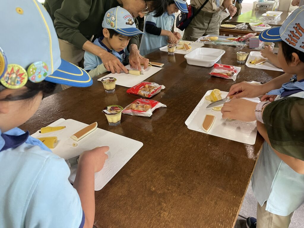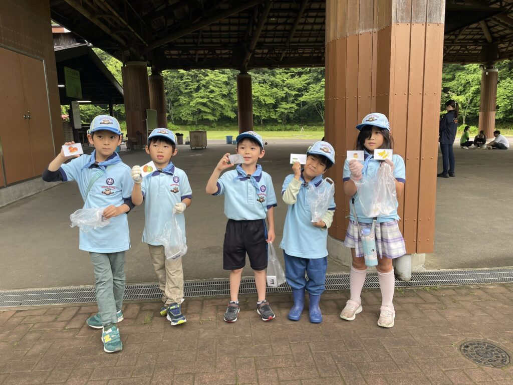 みんなのために準備をしたおやつの食材が、どろぼうに盗まれてしまいました!取り返すために、自然の中に隠された「追跡サイン」を頼りに、謎解きウォークラリーに挑戦しました。謎解きで手に入れた食材を使って自然の中でお菓子作りに挑戦しました。たくさん歩いて、自分たちの手で作ったお菓子はとっても美味しそうですね!