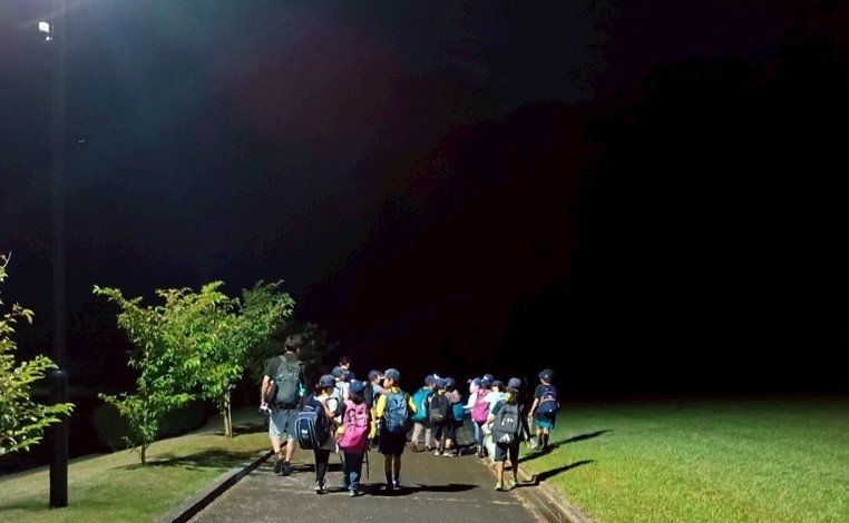 ナイトハイクで1日目が始まり、2日目はハイキングと竹の水鉄砲づくりの後にみんなでキャンプファイヤー、3日目は川遊びで締めくくりました。