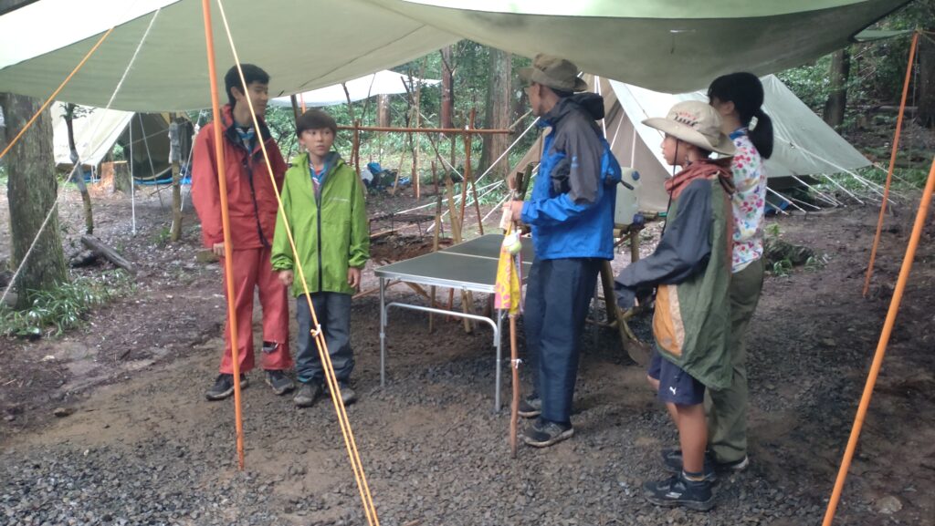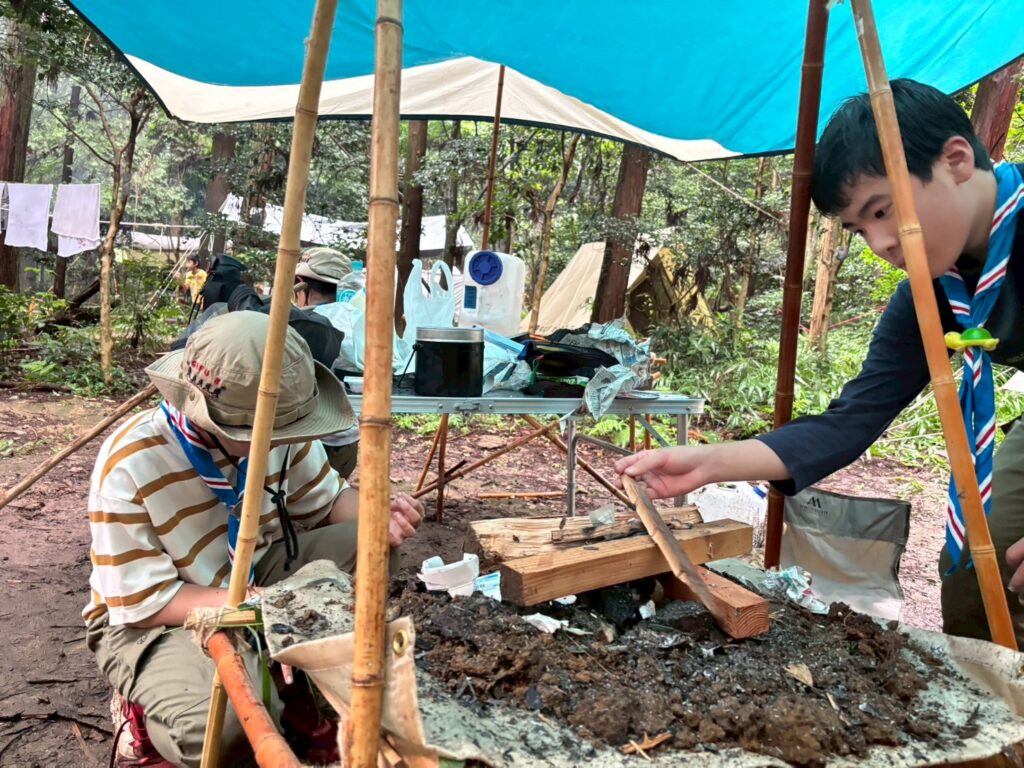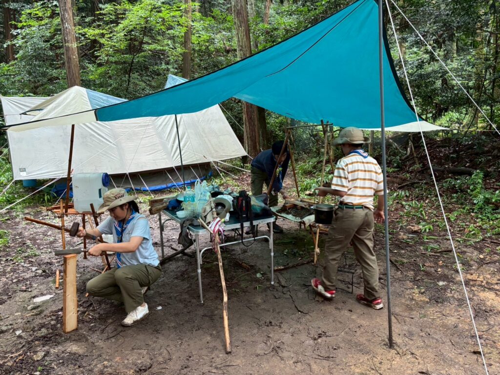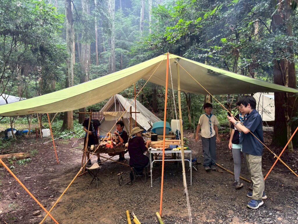 2日目以降はあいにくの大雨となりましたが、8団のスカウトたちは雨にも負けず、元気いっぱいに活動。自然の中での挑戦を通じて、たくましさと仲間との絆を深めました。