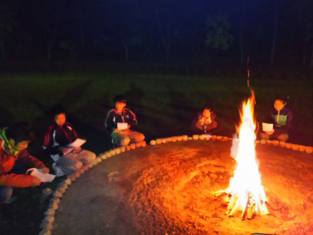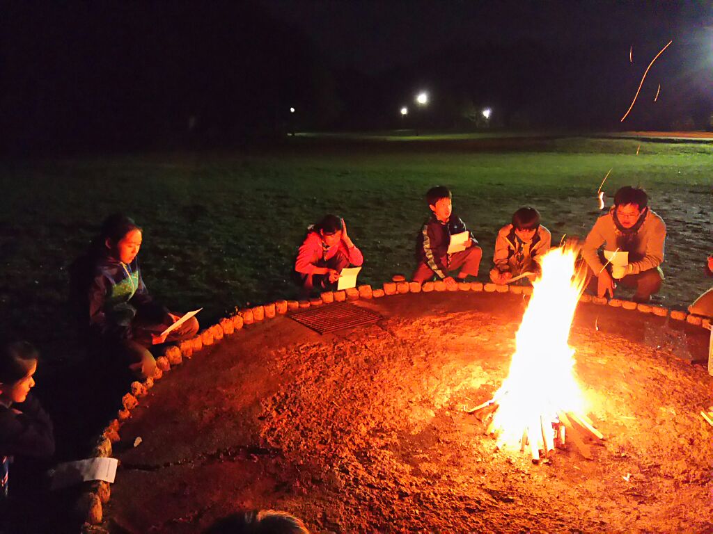 英語の歌も奇妙な踊りも楽しかったね。キャンプの夜はやっぱりファイアーだね。