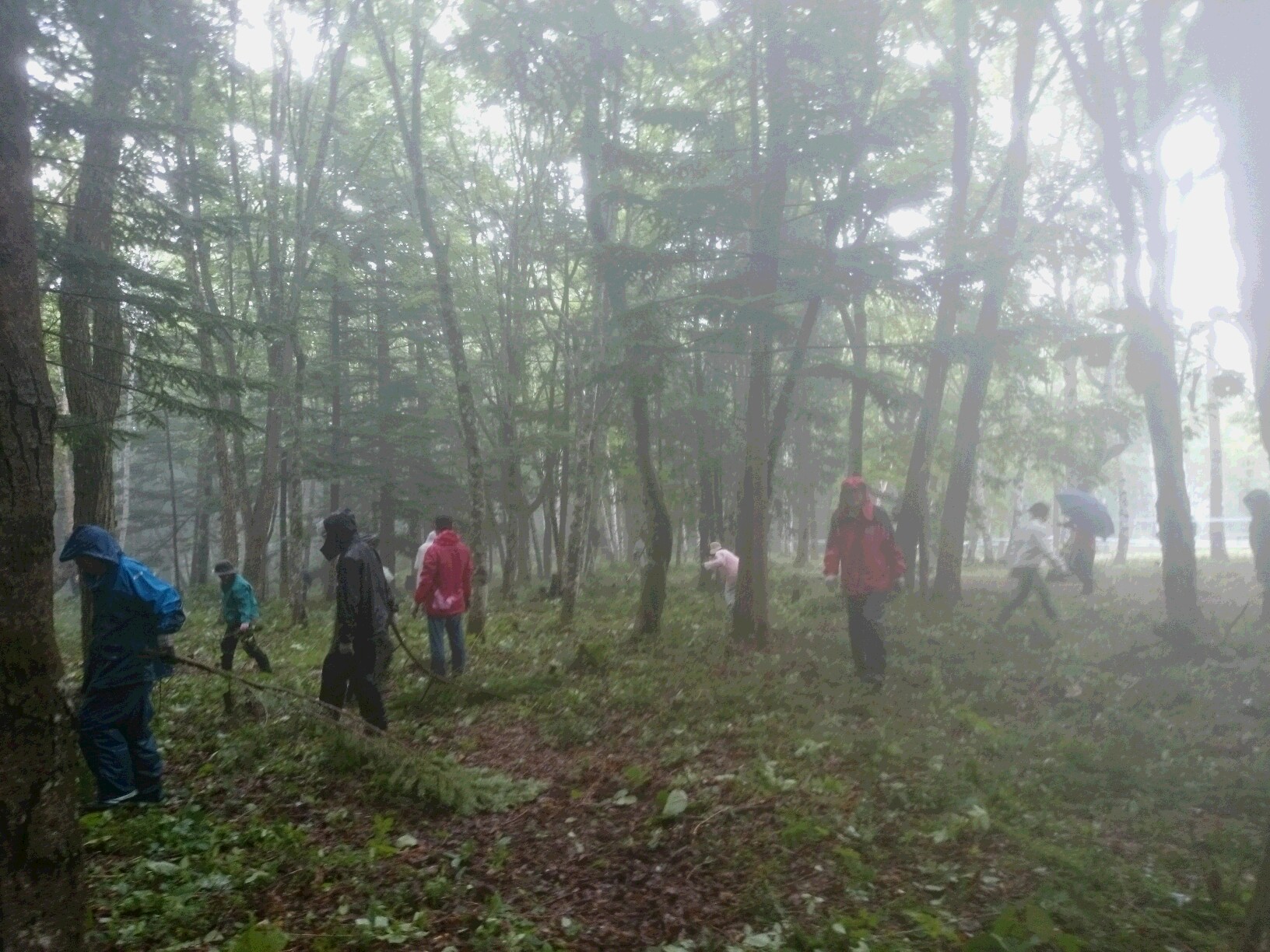 岐阜、三重の参加隊が野営する場所(1サブキャンプ)を、岐阜県連盟、三重連盟の指導者大勢で雨の中、木の伐採、草刈りをおこないました。
